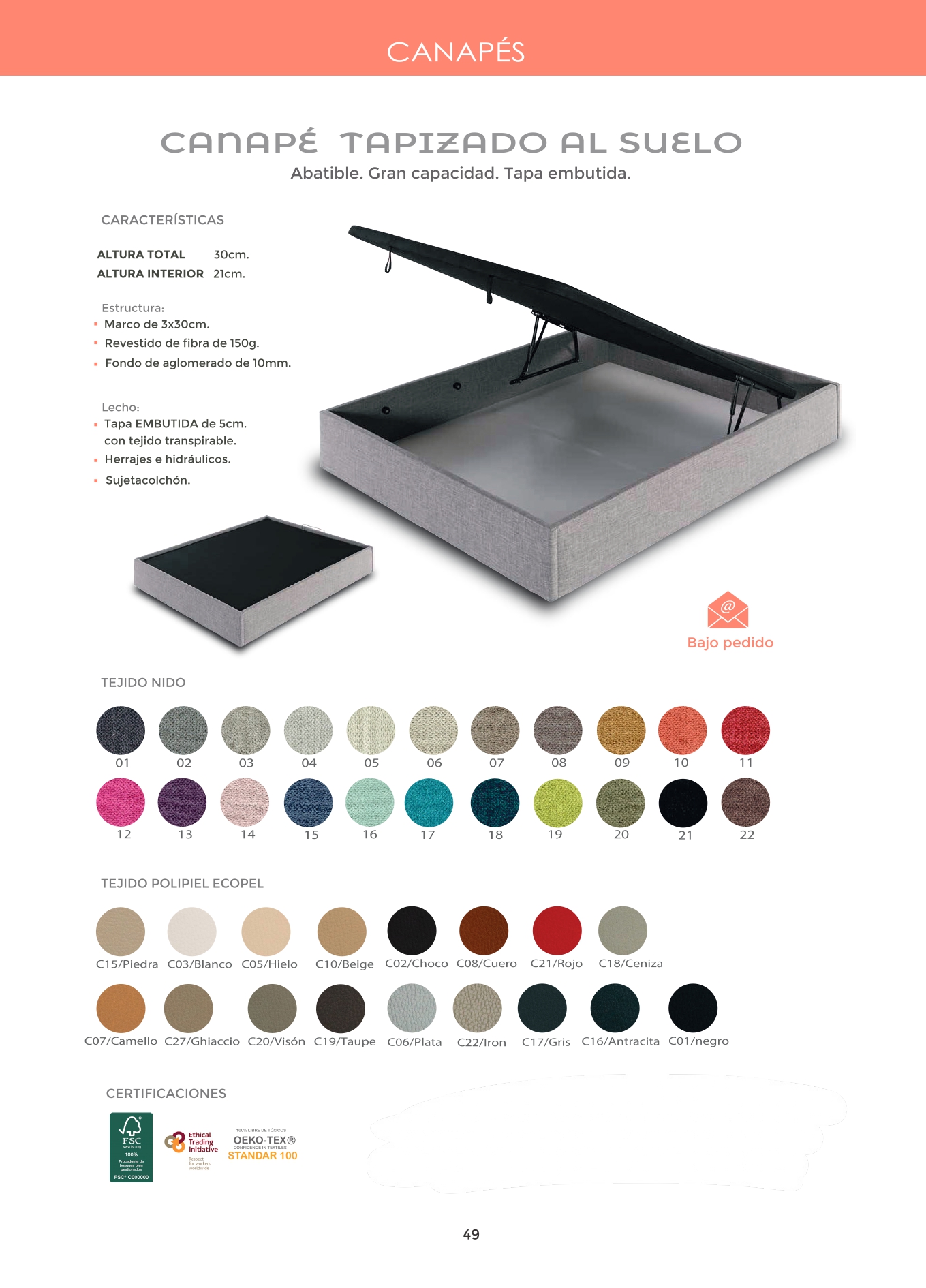 -CANAPE ABATIBLE, SOMIER, ARTICULADO,BASE TAPIZADA